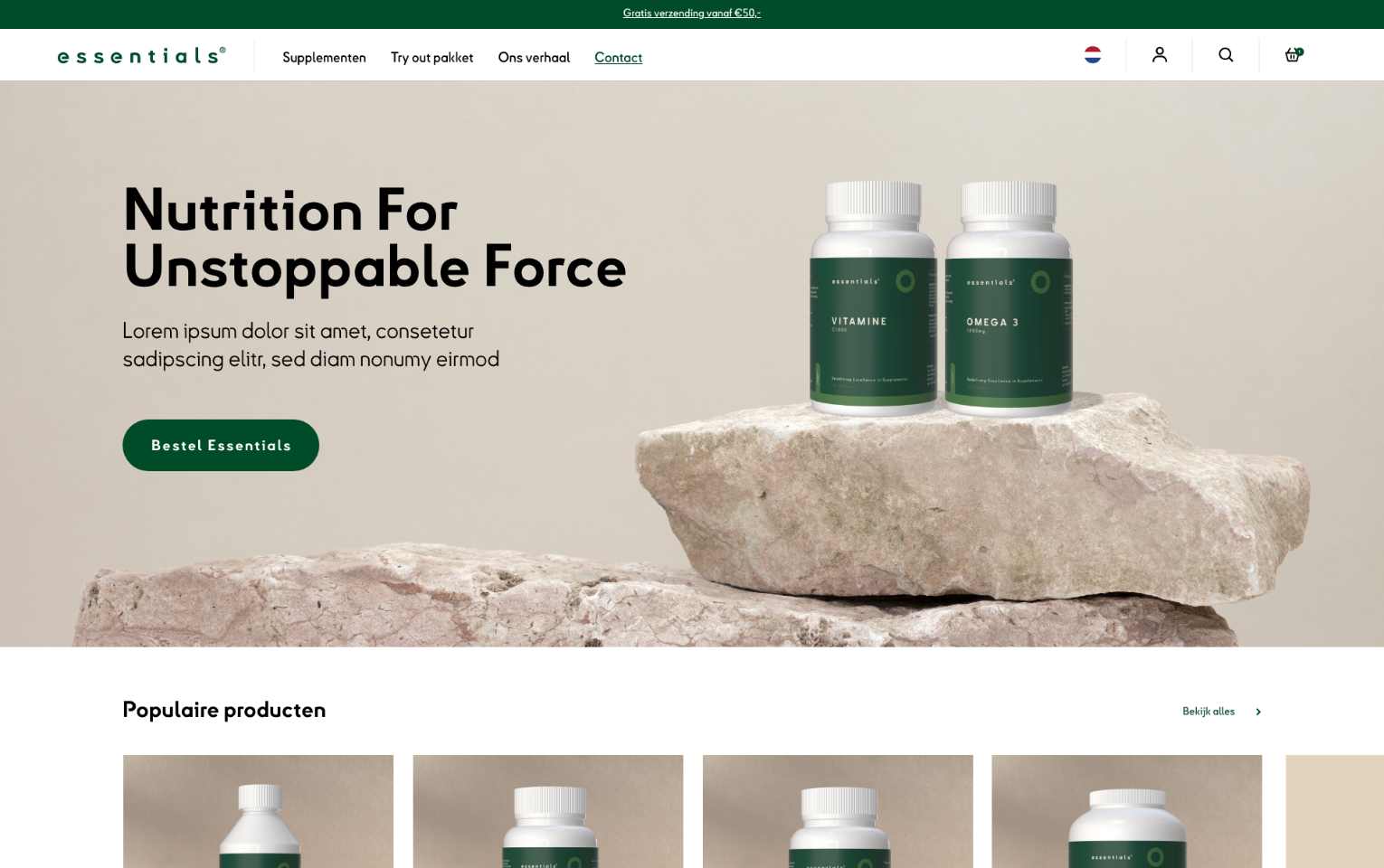 Een merk dat rust en kwaliteit uitstraalt, tot in het kleinste detail. De donkergroene verpakkingslijn geeft Essentials een krachtige, onderscheidende uitstraling binnen de sport- en healthmarkt. In combinatie met heldere branding, sterke fotografie en een doelgerichte B2B-website staat er nu een merk dat professioneel oogt én strategisch klopt.
